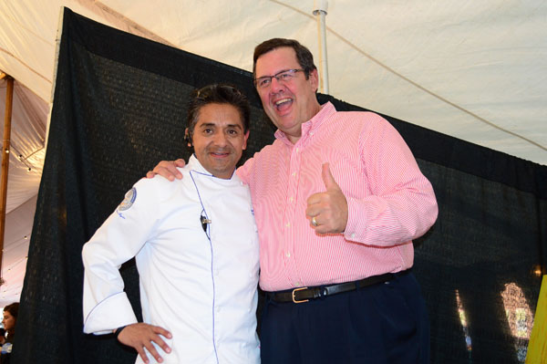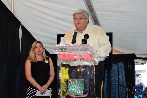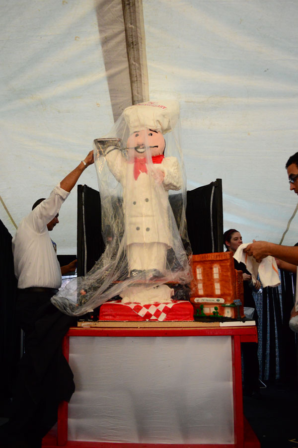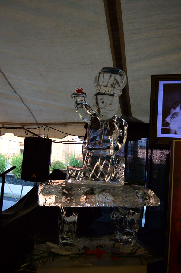 Caterer Manny Lezama created a podium sculpted out of ice as well as an ice sculpture of the trademark “Chef” and a five foot cake of the same iconic image.